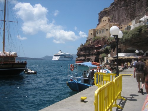 das letzte Bild ist die "> vor Santorin. Wir sind mit dem Tenderboot übergesetzt. -