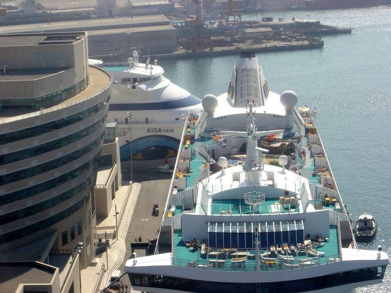Bananenweizen: Wenn ich das richtig sehe seid ihr am 15.5. in Barcelona. An diesem Tag werden neben der Bella noch die MSC Fantasia und die Costa Corcordia in Barcelona sein. Die Bella ist also das kleinste Schiff an diesem Tag. Die Chancen stehen also nicht schlecht am WTC festzumachen da die beiden großen zu lang sind fürs WTC.