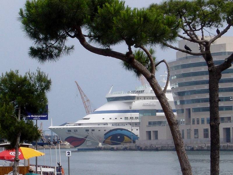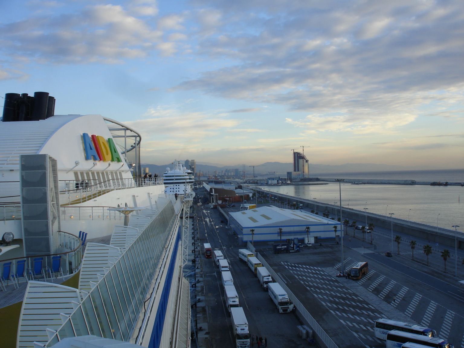 google einmal: estacio maritimo, torre san jaume. dann schau dir die stadtkarten an von barca(lona). dort legt normalerweise die aida's an. nur die diva ist zu groß. jetzt weiter draussen, mit den ami's.
