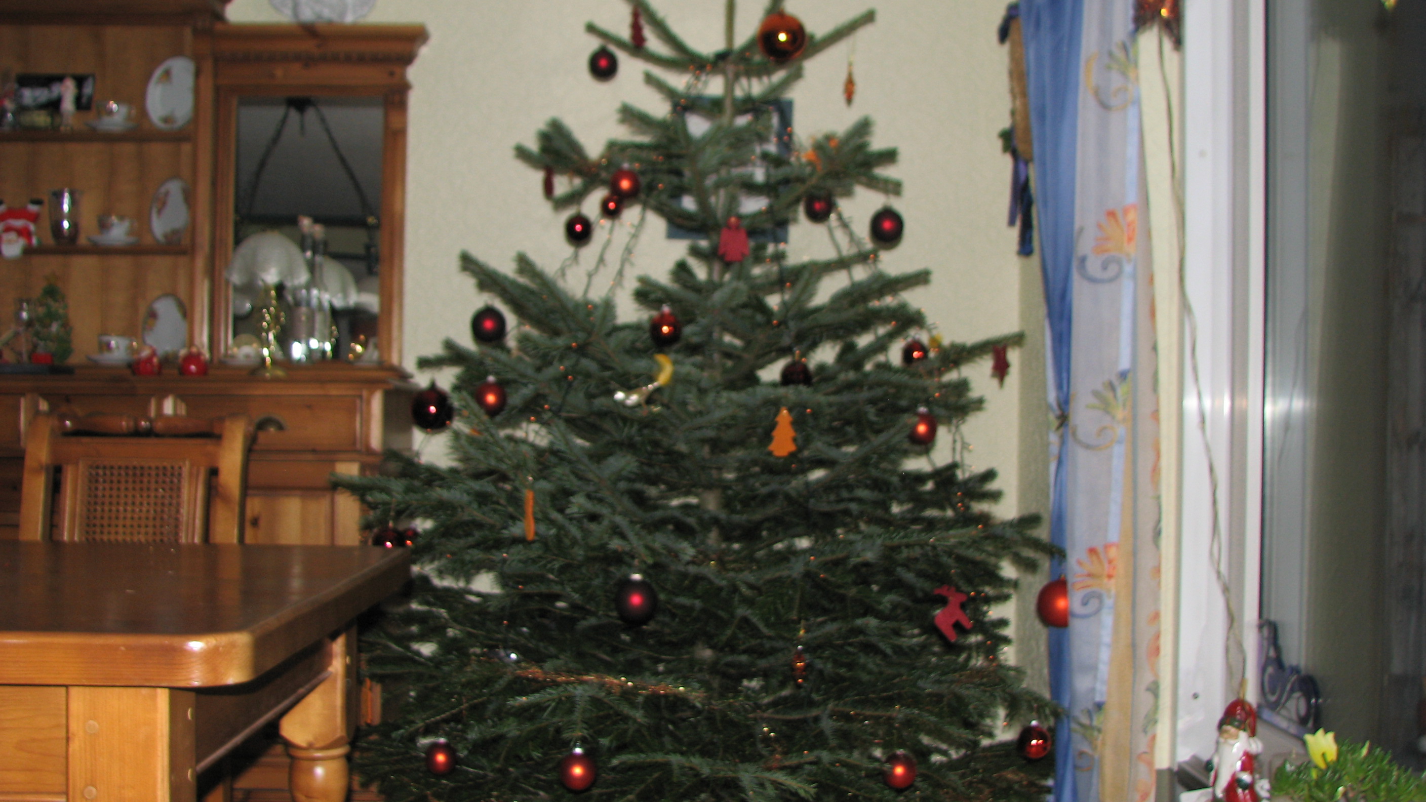 So beschloss ich irgendwann zum 1. Advent einen nackten Baum im Flur aufzustellen, der dann mit den ganzen Sachen, die heimgebracht wurden geschmückt wurde. An Weihnachten kam dann die Lichterkette dran.