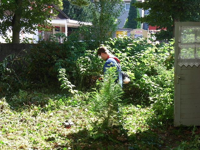 Hier arbeitet sich gerade mein Sohn durch einen Garten unserer Mieter.