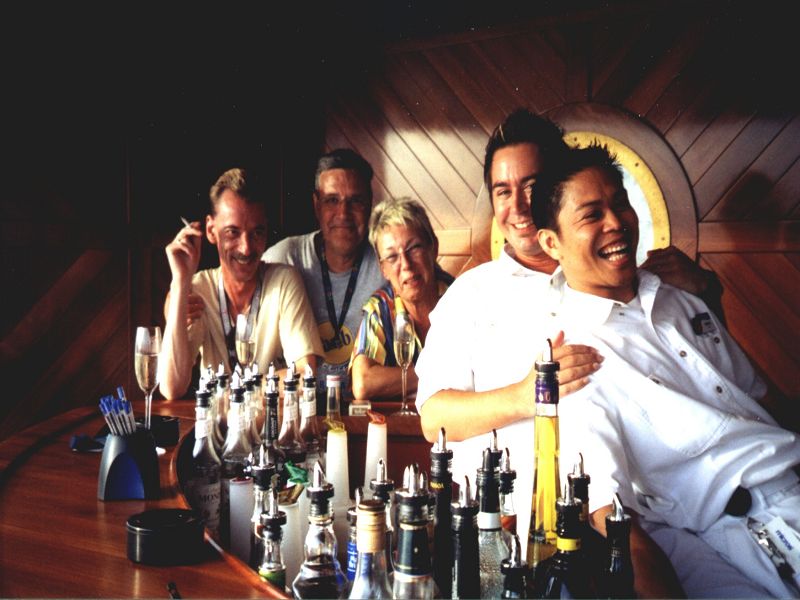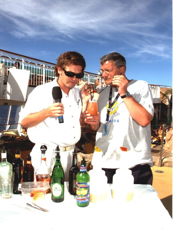 die Ani- Crew, kompetente Jury beim Cocktailwettbewerb, zweimal Ocean- Bar und mit Birdy Pelikan (CD)
