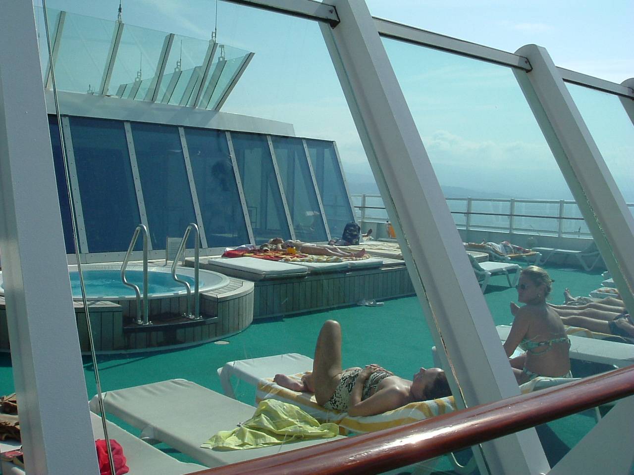 Nach dem Frühstück waren wir kurz auf Deck 11 im Bugbereich am Whirlpool. Gegen 10 haben wir dann unsere Liegen aufgegeben und sind in die Kabine, um auf die Rettungsübung zu warten. Nach der Übung gabs keine Liege mehr. Wir haben uns dann erstmal in die Ocean-Bar verzogen und die Sonne genossen.