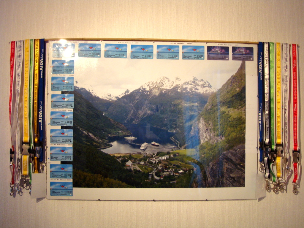 Ich habe heute mein Bordkartenbild neu gestaltet. Meinen Bilderrahmen 800 x 600 mm habe ich mit einem eigenem Foto 700 x 500 mm aus dem Geiranger Fyord neu bestückt. Sieht sehr schön aus und erinnert mich jeden Morgen an unsere Traumtour mit der :aida: Aura. Jetzt habe ich auch wieder Platz für die nächsten Bordkarten und kann wieder buchen. :D ;)