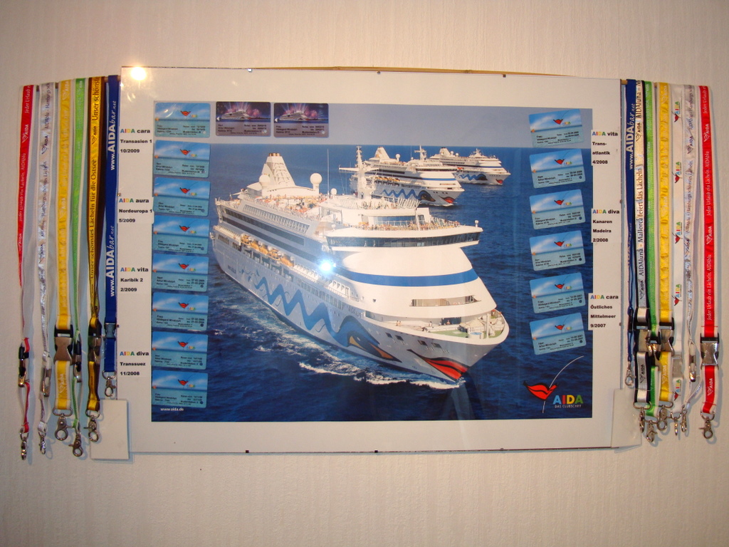 ... bei mir hängen die Karten einschl. Lanyards über der Türsprechanlage. Das mit dem Poster ist aber auch gut. Für die "Nicht-Aida-Reise" hab ich eine Weltkarte aufgehangen - die Routen dazu mit reinzufummeln, wird zu unübersichtlich.