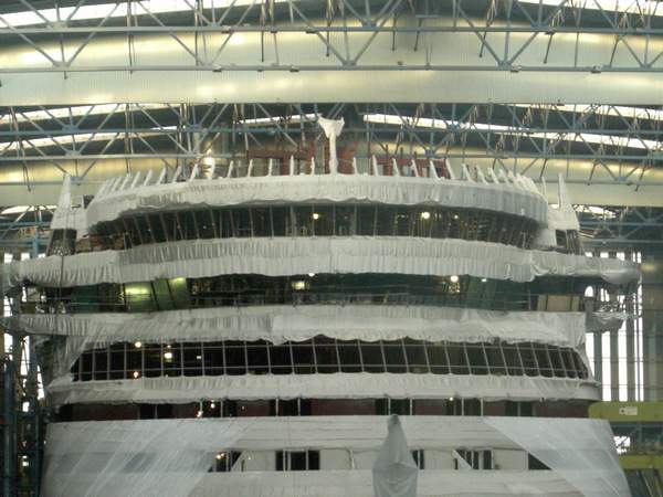 So langsam setzt das Reisefieber ein und ich kann nicht schlafen. Also schau ich noch mal ins Forum und setze ein neues Foto aus der Werft der AIDAluna ein. Inzwischen ist auch die Glasfront des Theatriums gut zu erkennen.