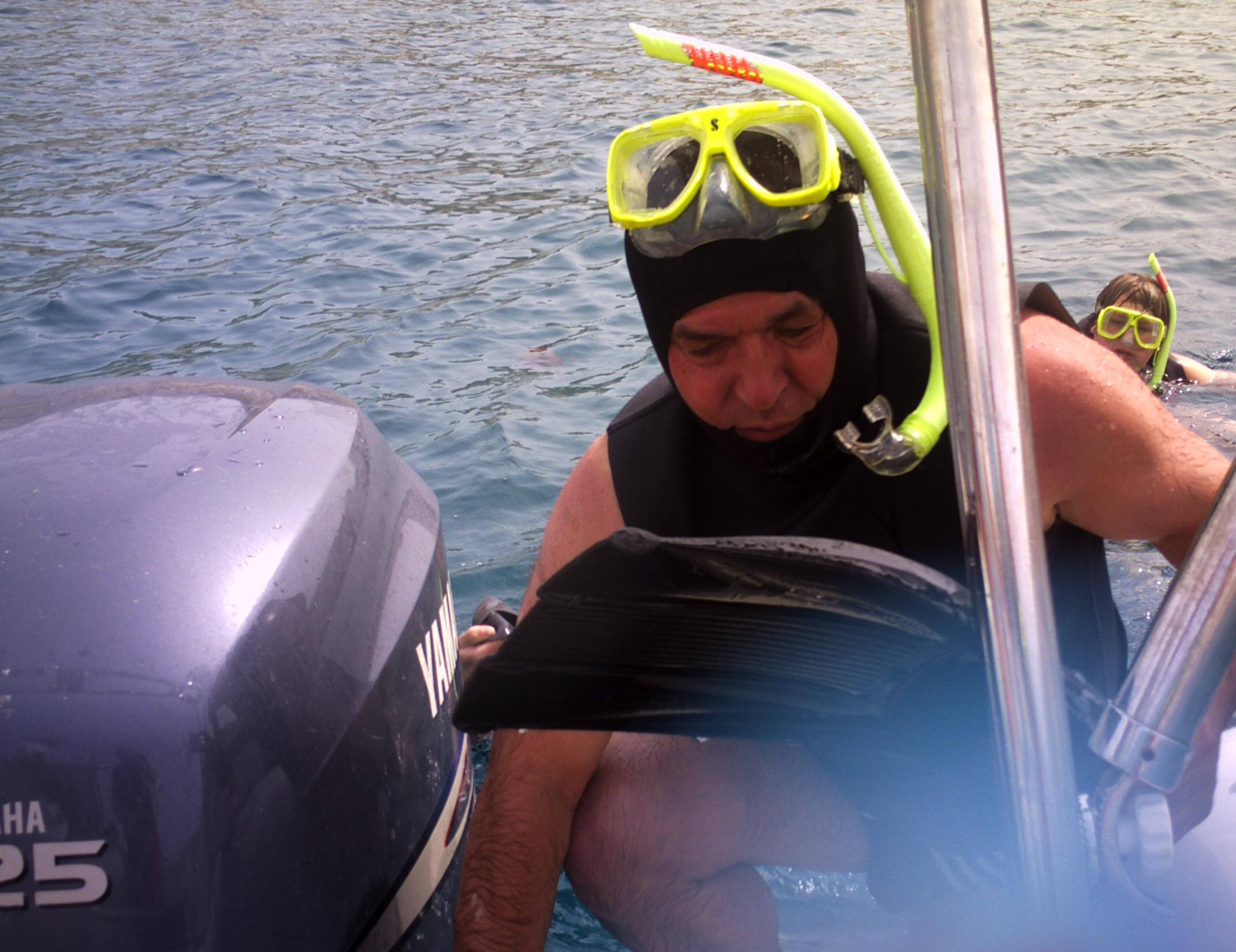 Für diesen Tag hatte ich zusammen mit Sandras Papa einen Schnorchelausflug geplant. Wir wurden in ein Hotel an der Küste gebracht und nach einer Einweisung ins Schnorcheln mit dem Speedboot in eine Bucht. Dort gings dann los. Das Wasser war mit 19 Grad nicht wirklich warm, aber die Neoprenweste hat schon bissel die Kälte von uns abgehalten. Aber nach 20 Minuten mussten wir dann doch erstmal aus dem Wasser. Neben der "Kälte" störten auch die Quallen. Der Tauchleherer hat uns dann in eine andere Bucht gefahren. Dort war es zwar auch kalt, aber die Quallen waren nicht so aktiv.