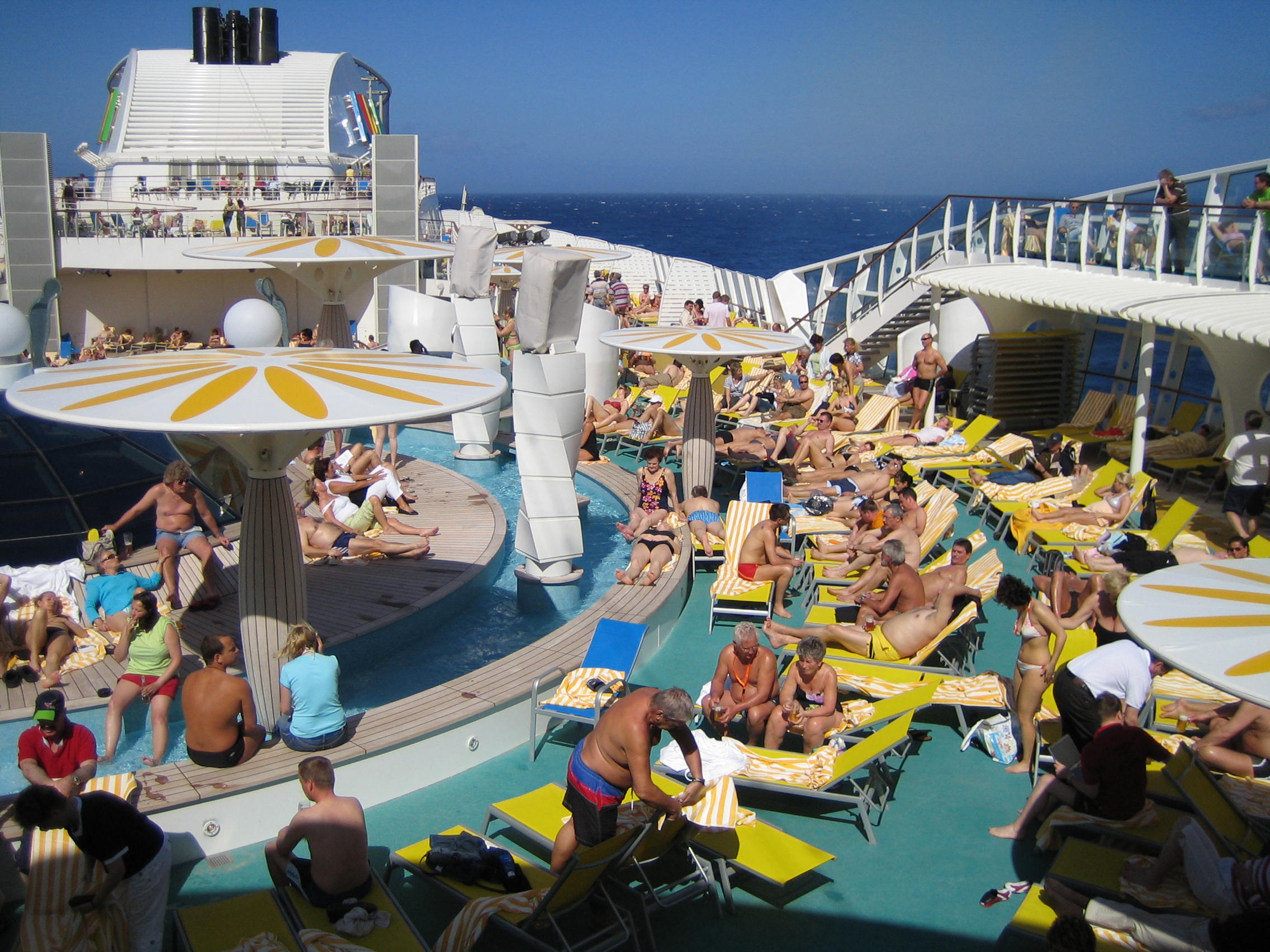 Hallo, meine Familie und ich überlegen, ob wir nächstes Jahr eine Mittelmeerreise mit der Diva machen. Tochter und ich möchten unbedingt, aber mein Mann kann sich nicht vorstellen mit 2000 Menschen auf einem Schiff zu sein. Nun mal eine banale Frage: Ist es nicht wirklich sehr voll ? Bekommt man Liegen an Deck ? Hat man Platz im Fitness-Bereich ? usw.,usw.