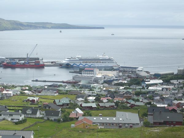Da der Liegeplatz praktisch in einem Containerhafen liegt und man dort nicht zu Fuß rumlaufen darf, gab es einen Shuttleservice vom Hafengelände zum nächsten Parkplatz am Hafen (ca. 3 Min. Busfahrt). Der Service war sehr gut organisiert ohne lange Wartezeiten und die Busse konnten einen auch zu einem anderen Punkt in der Stadt bringen, was aber eigentlich unnötig ist, da Thorshavn relativ gut zu Fuß zu durchlaufen ist.