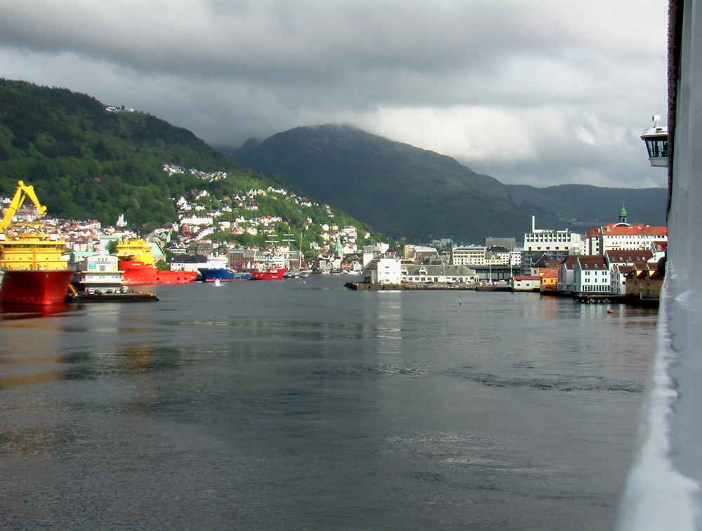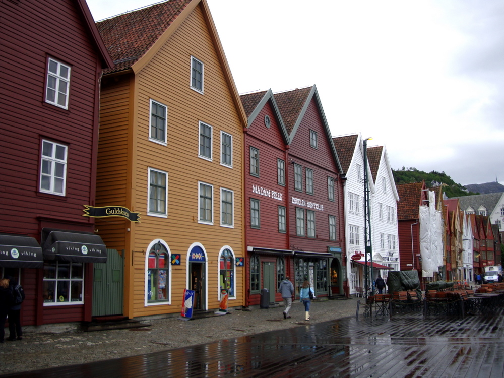Nach dem Abstieg vom Floyen gingen wir zum Fischmarkt. Nun ging es langsam wieder zum Schiff zurück. Ab und zu ein Regenschauer, dass gehört bei einem Bergenbesuch dazu.