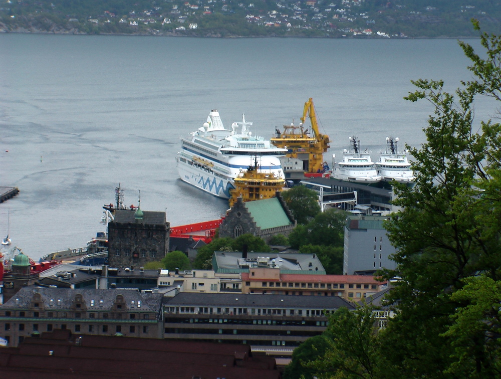 Der Tag begann mit einem schönen Sonnenaufgang. Bergen machten wir auf eigene Faust. Ein Spaziergang durch die Altstadt von Bergen und eine Fahrt mit der Floyen Seilbahn auf dem Floyen 302 m Hoch stand auf unser Programm. -