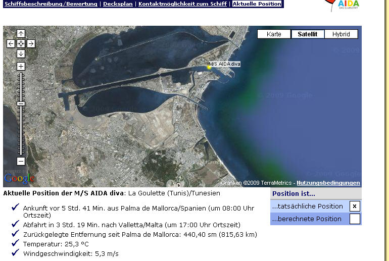 Die Diva sollte heute in Malta sein ?( wenn man auf die Webcam von Malta http://www.earthcam.com/malta/valletta/ geht steht da heute keine Diva. :( Geht man auf die Bugcam von der Diva sieht es nach Tunis Hafen aus.?( Hier im Forum steht nun auch Malta. :unsicher: Wo ist sie den nun ??