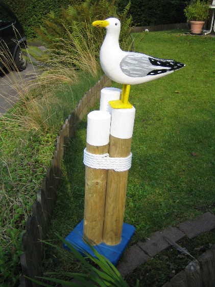 @all Und um das Ganze mal wieder in die Bahn der "Seefahrer" zu lenken, zeige ich Euch mal, was statt Zwerg bei uns im Garten so rumsteht. Statt Zwerg halt mehrere Möwen. Hier eine davon.
