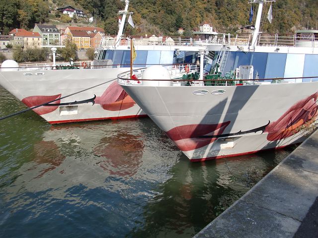 Die A-Rosa Donna und Bella nebeneinander an der Anlegestelle 13 + 14 in Passau