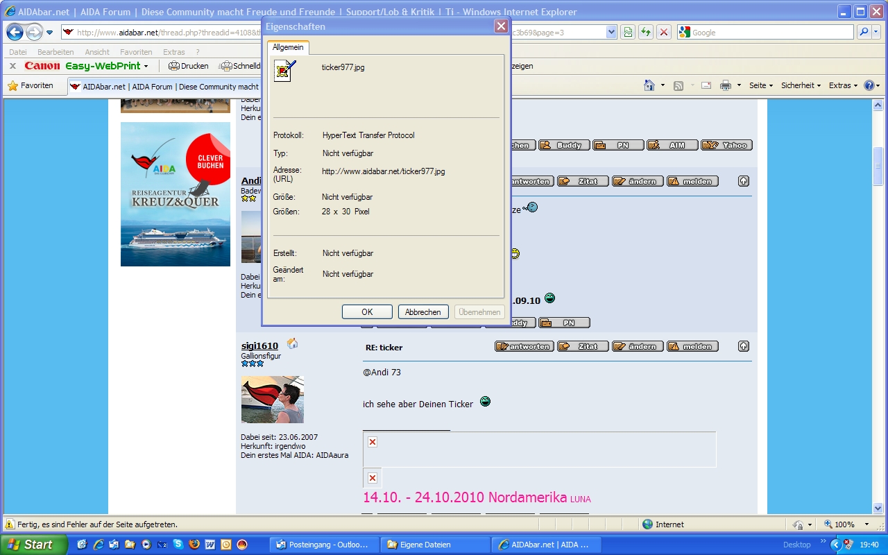 Ich habe mal bei Sigis erstem Ticker nach den Eigenschaften geschaut. Der IE zeigt mir folgendes Bild. Ist das normal?