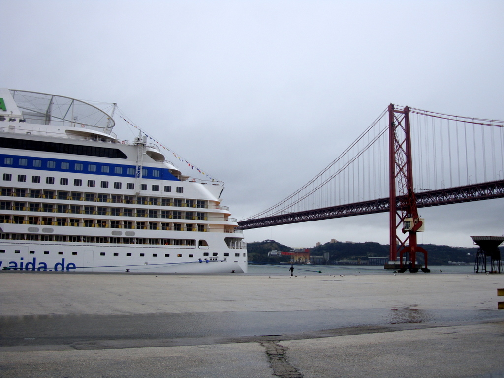 Lissabon im Regen. Wir liefen abends um 18.00 Uhr ein, bei Sturm und Regen.