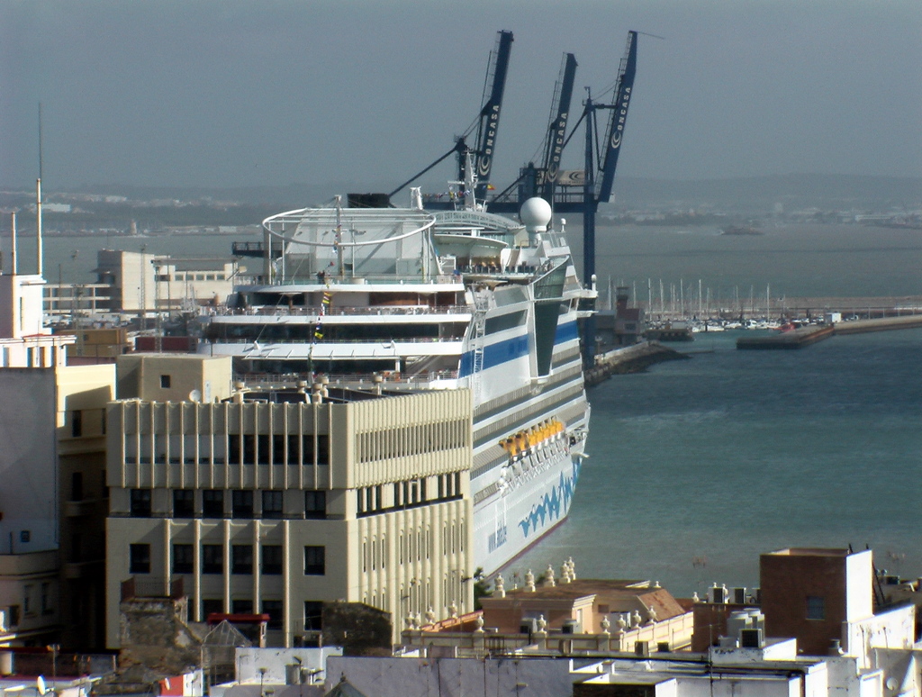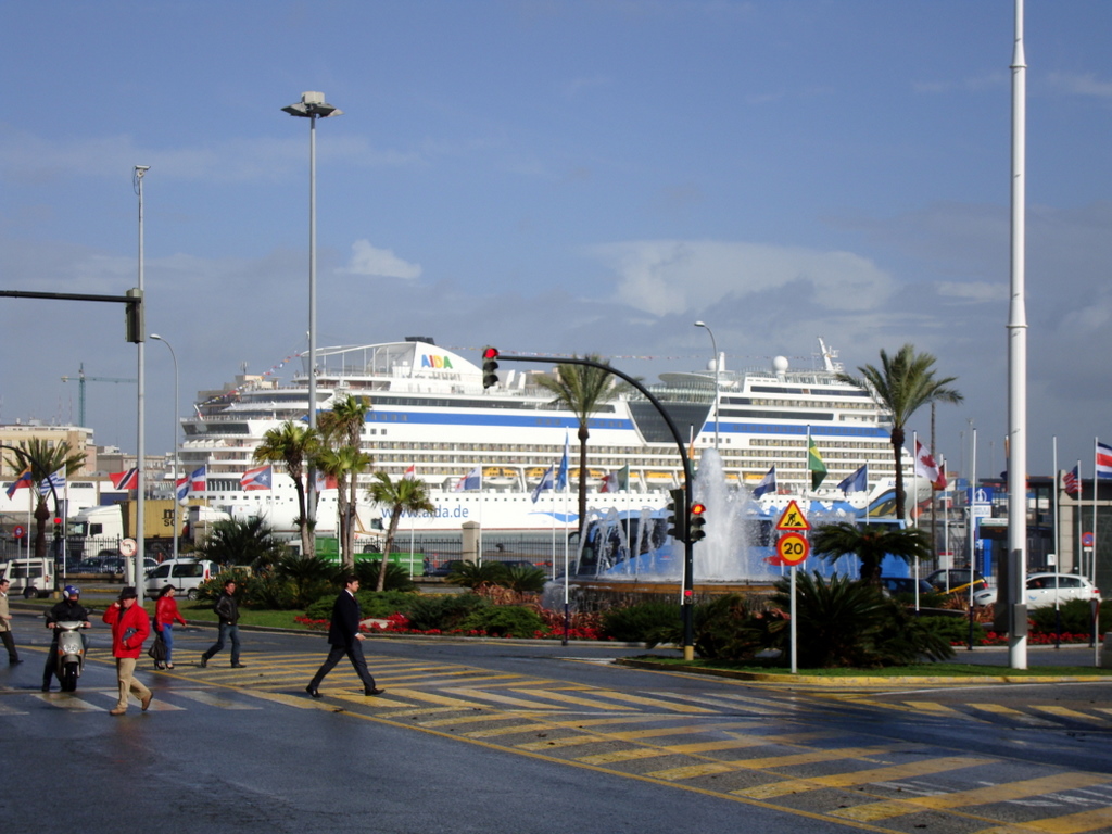 wir machten fest am Pier ADOSADO Terminal D. Von dort aus fuhr ein Bus bis zur Columbus Säule. Die Fahrt hin- und zurück kosteten € 6,00.