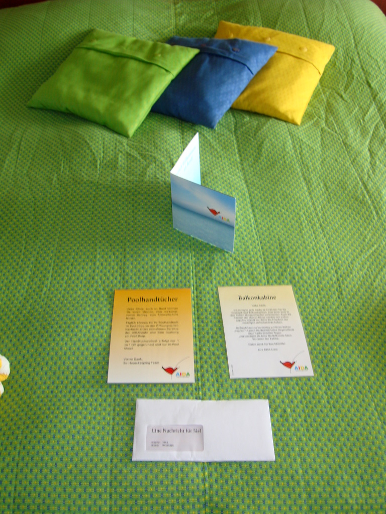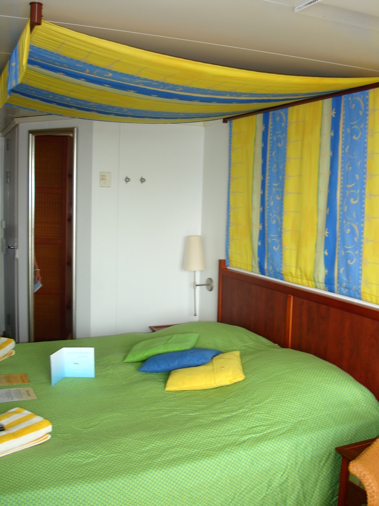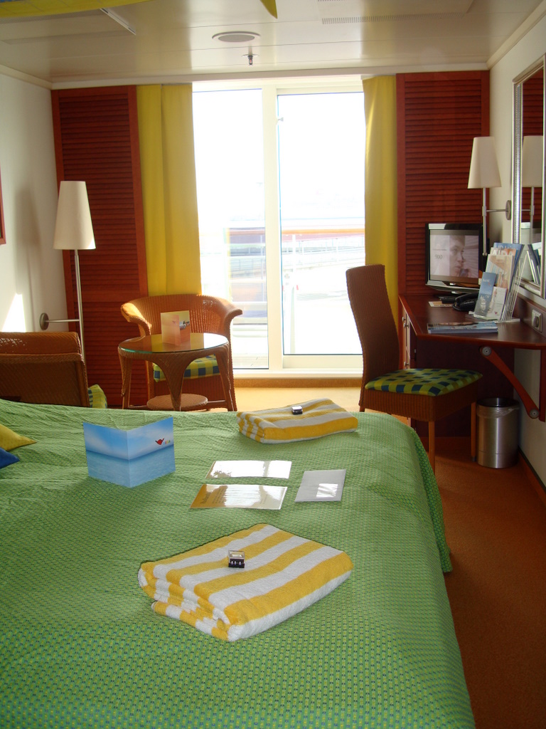 Wir bezogen um 16.00 Uhr unsere Balkonkabine 7152 auf der Steuerbordseite. Die Kabine hatte den bekannte "> Standart.