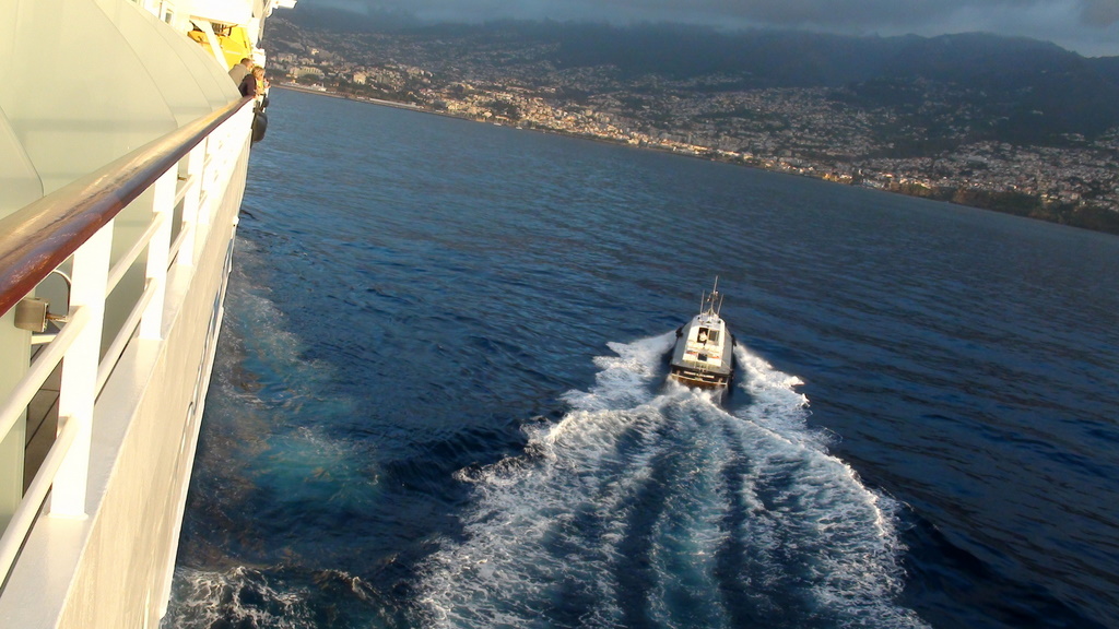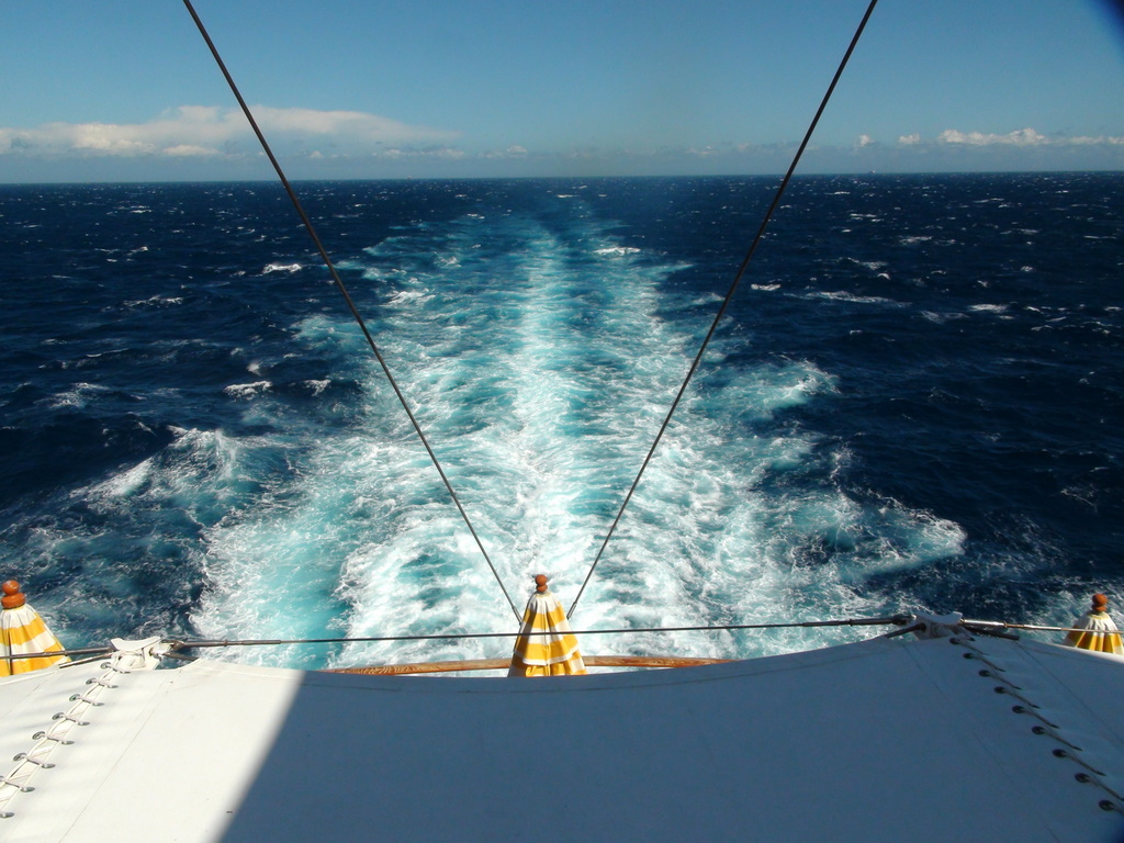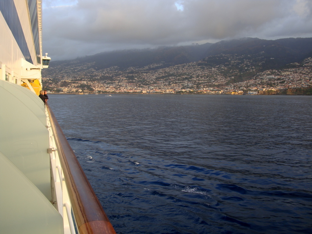 Am Ende des ersten Seetages um ca 23 Uhr, durchfuhren wir die Meerenge von Gibraltar und fielen mit dem Kurs ab. Jetzt kam für die Seekranken noch die seitliche Dühnung dazu. Kurz vor Madeira legte sich der Wind wieder und es war der Rest der Reise Ruhe im Schiff.