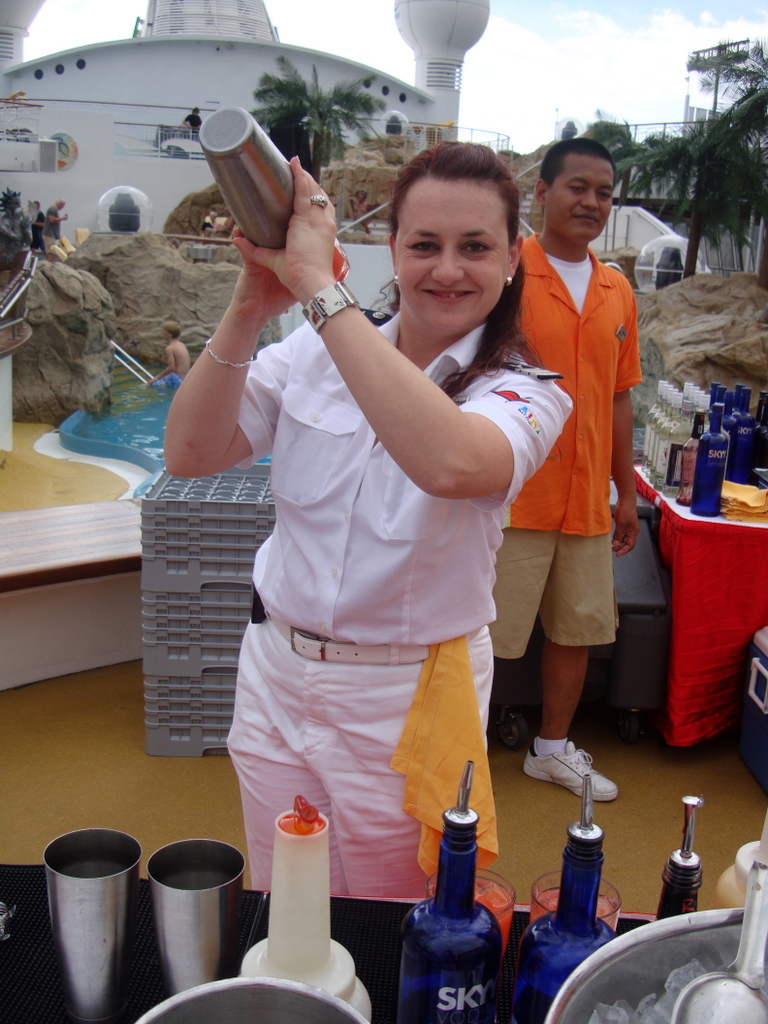 von der "> bar und trank einen schönen Cocktail von meinem Bordguthaben.