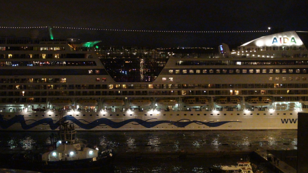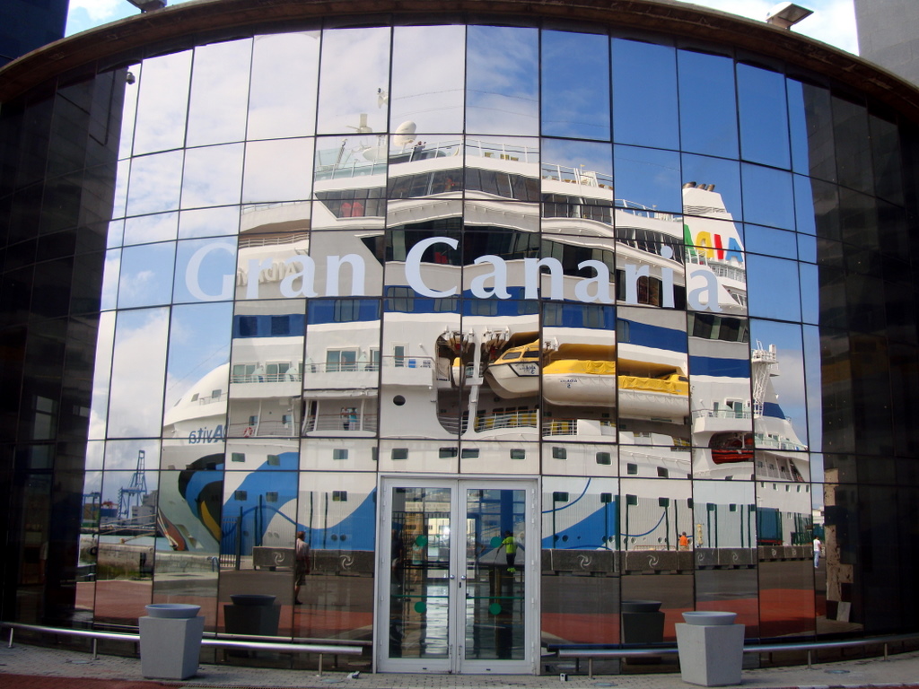 Mein schönstes Foto der "> vita. Das Schiff spiegelt sich im Hafenterminal in den verspiegelten Scheiben.