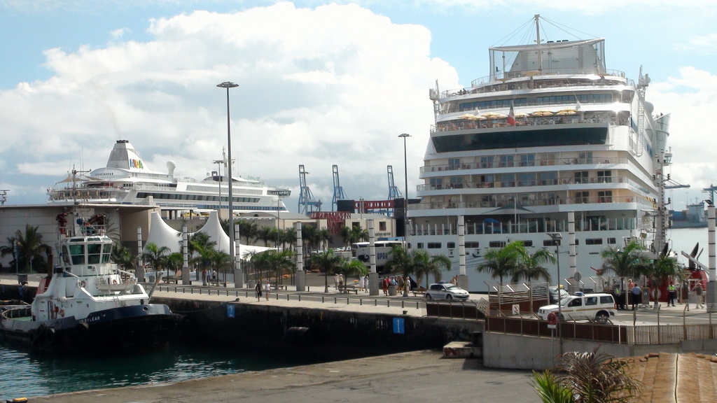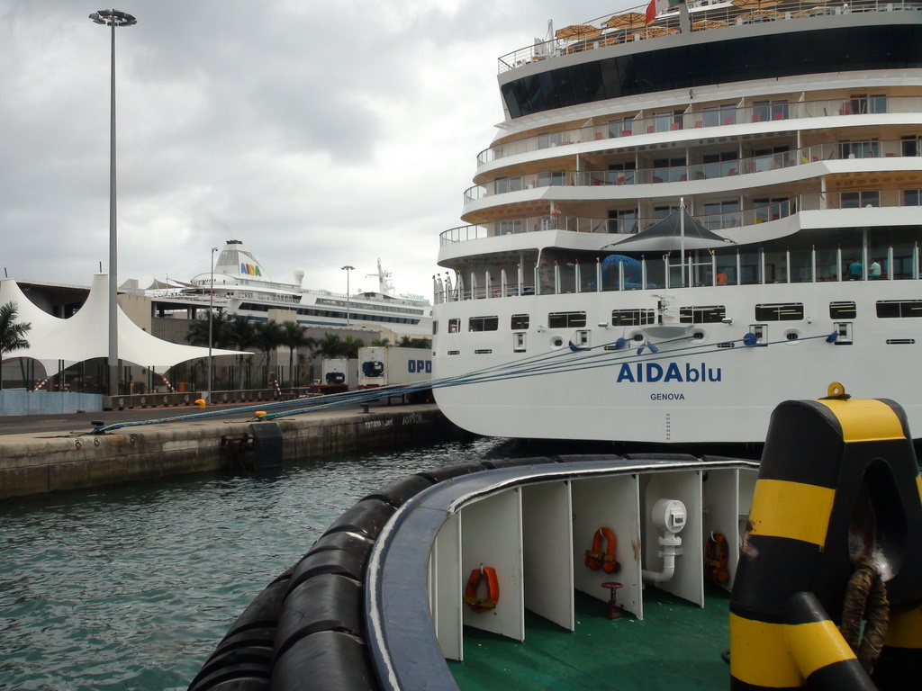 Das Einlaufen in Las Palmas, Gran Canaria hatte was. Alle die fotografieren konnten waren an Deck. Im Hafen lag die "> Blu und war am Bunkern. Es wurden Fotos aus allen lagen geschossen. Da die Vita im Hafen noch drehte, verschoben sich die Photografen noch von Backbord nach Steuerbord. Ich sage nur das war ein durcheinander.