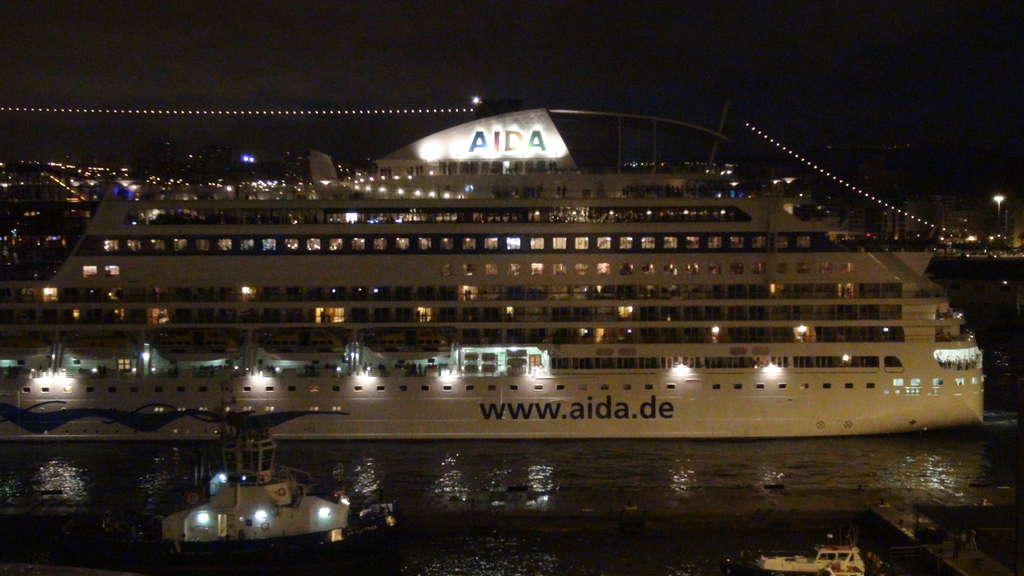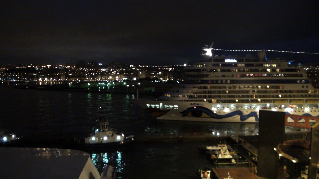 Das Ablegen der "> blu aus Las Palmas, das hatte was. Am Abend um 20.00 Uhr stand ich fast allein oben auf dem Deck der Vita und habe gefilmt und fotografiert. Da waren nur die wahren "> fans, der Rest hat Essen vorgezogen.