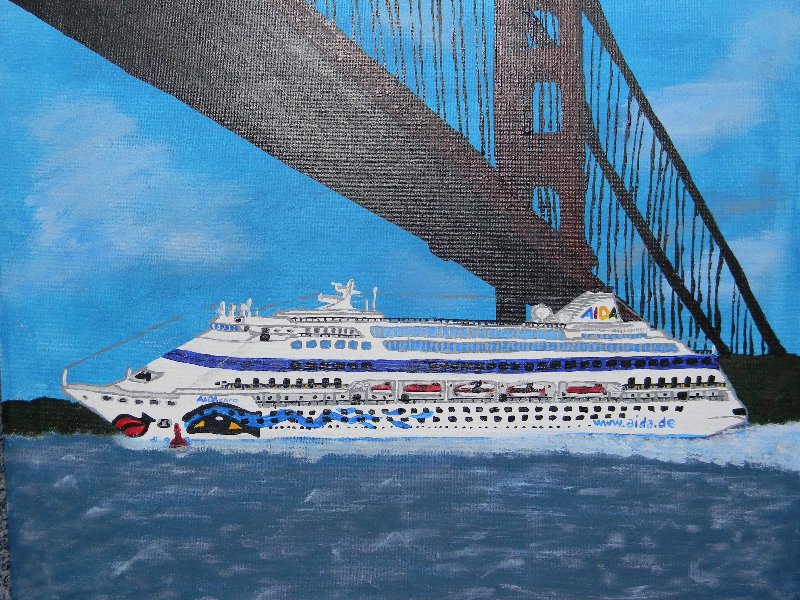 eben fertig geworden (frisch aus der Werft) Mein neues und letztes Bild! Die AIDAcara unter der Golden Gate Bridge.