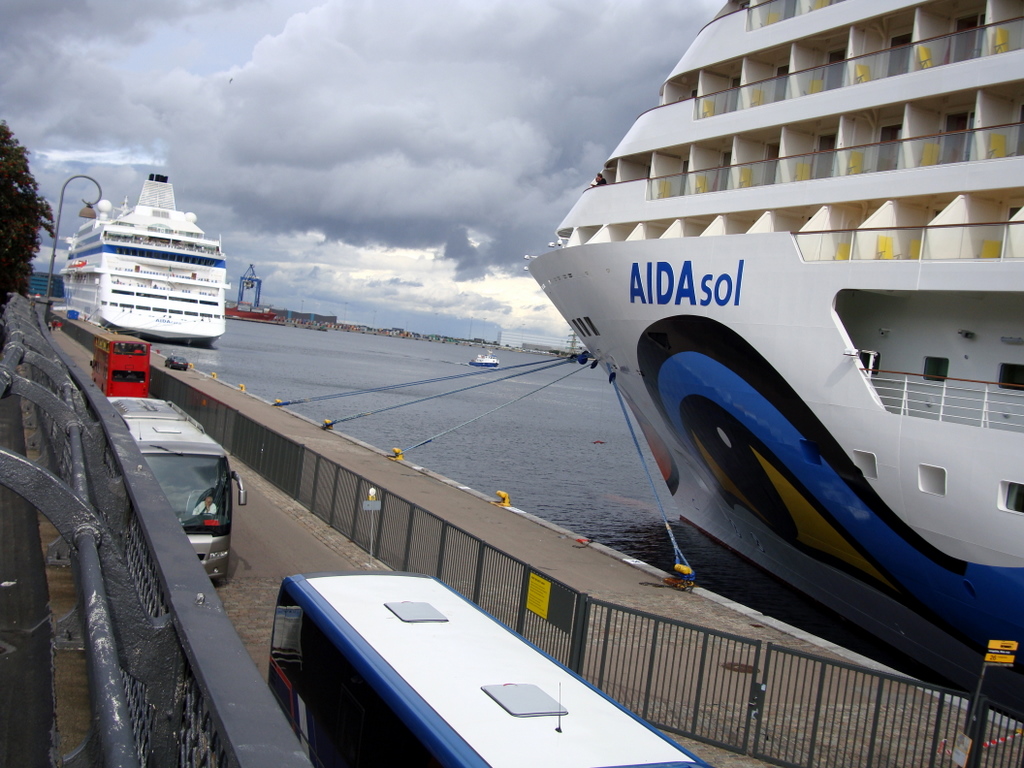 Am Kai angekommen, da lagen sie nun die "> Cara und die "> sol. Da das Wetter noch schön war, machte ich noch ein paar Fotos von der "> sol. Der Dampfer ist ja noch neu, den kennt ja noch nicht jeder.