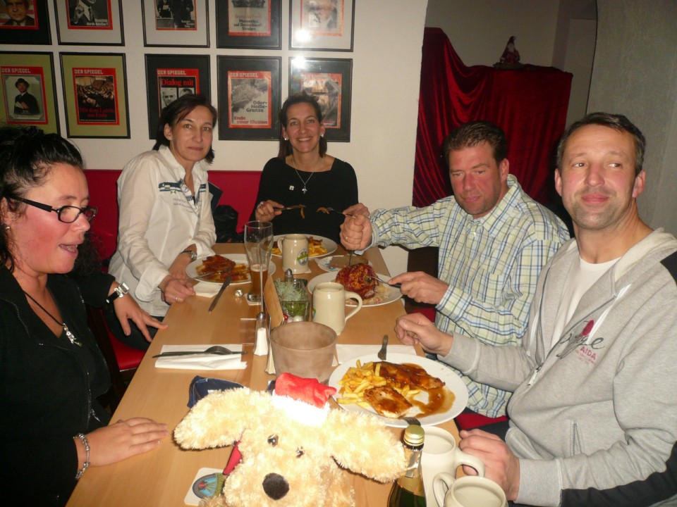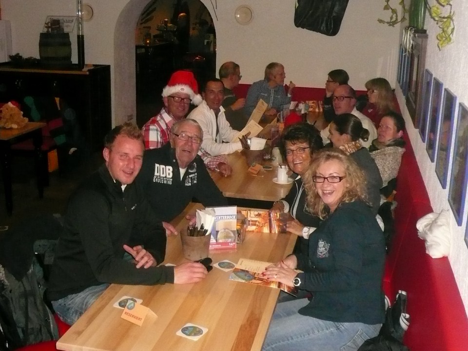 Der Glühwein war wieder lecker uns geschluppt wie der Parrer ins Wirtshaus und wie man auf den Fotos sehen kann hat das die Stimmung gehoben.Nach dem wir uns alle in der Kneipe gestärkt hatten