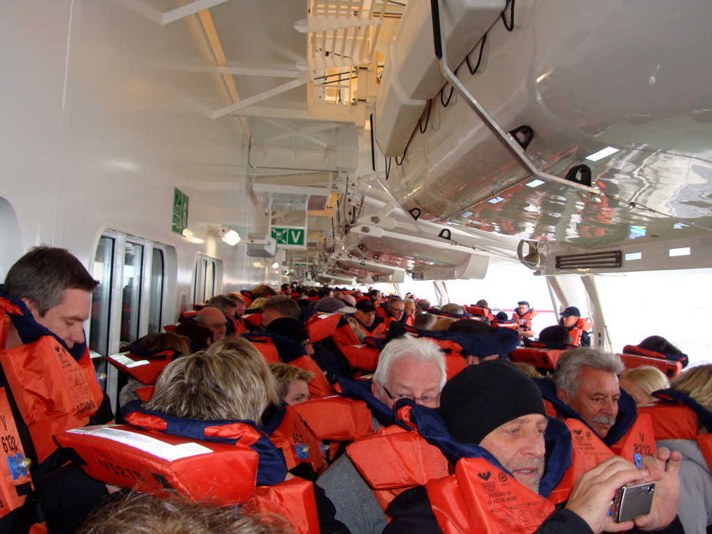 Das Oberdeck war leider wegen Vereisung gesperrt, da konnte ich nur kurz hinter den Türen fotografieren.