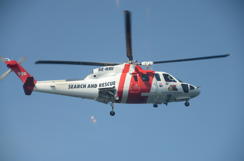 Die Rettungsübung war mitten auf der Ostsee. Und der Hubschrauber kam aus Schweden. Früher Nachmittag Am Samstag25.5..Sonntag .