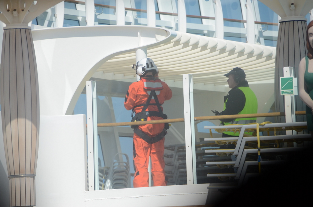 Ein Hubschrauber setzte einen Retter ab. Zuschauen konnte man nur von innen, das Deck wurde geräumt.