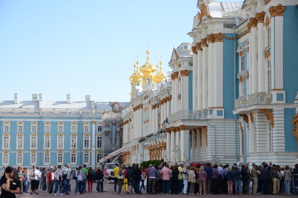 Zuhause hatten wir uns schon zwei besondere Ausflüge gebucht. Die Eremitage, eine Führung mit "> Gästen und mit einem Konzert. Dieser ist leider nicht zustande gekommen und so mussten wir ausweichen und wir buchten Paläste in Puschkin und Pawlowsk. Dieser Ausflug dauert so 9 Stunden und ist eigentlich zu lange. Nach dem Katharinen-Palast wurde das Bersteinzimmer besichtigt. Ein Mittagessen wurde gereicht in einem großen Lokal. Dazu ist nur zu sagen, man freut sich wieder über das Buffet der Bella. Danach mit dem Bus weiter zu einer Sommerresidenz des Zaren. Die letzte Besichtigung war eigentlich zu viel. Wer diesen Ausflug bucht sollte gut zu Fuß unterwegs sein. Meine persönliche Meinung zum Bernsteinzimmer: Das ist mehr Mythos wie Realität. Mir hat es im Katharinen-Palast weit besser gefallen. Im Bernsteinzimmer darf man nicht fotografieren. Jeder der in den Palästen Fotos machen möchte kann das gegen eine Gebühr von 4 € machen. Diese Regelung hat mir sehr gut gefallen. Das wäre in Deutschland nur in wenigen Fällen möglich. Keine Blitzaufnahmen. Unsere Reiseleitung sprach sehr gut Deutsch und ihre Ausführungen waren sehr ausführlich. Jeder bekam einen kleinen Mann ins Ohr. Alle Paläste und Museen sind sehr voll und man wird wie am Fließband durchgeschleust. Dass man etwas länger vor einem Kunstwerk oder einem Bild verweilen kann ist nicht möglich. Wieder auf dem Schiff, war erst einmal Ruhe angesagt. -