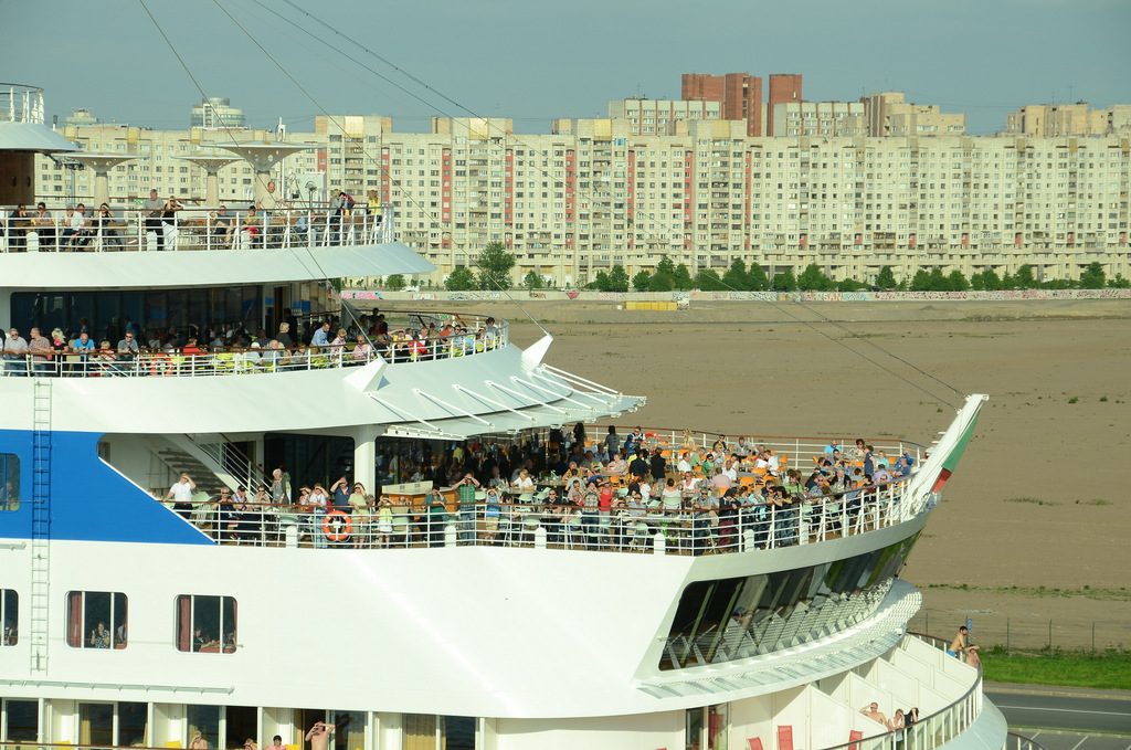 Nach der Einfahrt durch die Kronstädter Bucht hatte man schon einen ersten Überblick über den Hafen und verschiedene Wohnblocks.