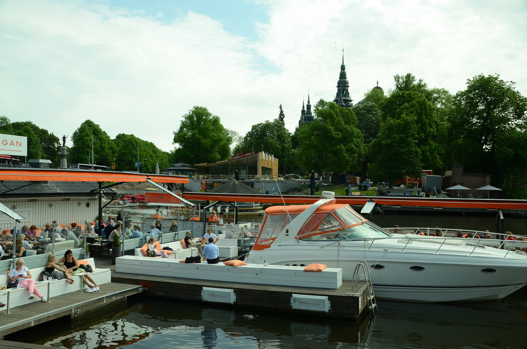 Am Strand-vägen liegen verschieden Segelschiffe, die auch als Hausboote genützt werden. Auf dem Wasser haben wir eine tolle Bar entdeckt. Das Shuttle-Boot ist auch an der "> -Mar vorbeigekommen die ebenfalls in Stockholm mitten in der Stadt lag. Dabei sah man doch wie groß, so eine "> ist.