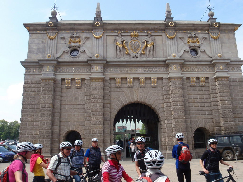 Luxus-Badeort. Mit einer sehr schönen Seebrücke Der Radscout erklärt bei jedem Stopp etwas über die Geschichte und den Ort. Von Dort aus führen enge Radwege in die Stadtmitte von Danzig, Etwas aufpassen sollte man schon,denn viele Radfahrer sind dort unterwegs. Kurzer Halt am neuen Fußball Stadion, ähnlich dem der Bayern. Und weiter ging es auf verschlungenen Radwegen zur Lenin-Werft-heute Danzig Werft. Dort wurde die Gewerkschaft Solidarnosc gegründet. Lech Walesa war lange Vorsitzender der Gewerkschaft und 5 Jahre Präsident von Polen. Das Denkmal erinnert an die vielen Toten der Streiks von damals am Eingang der Werft. Bald danach waren wir in der Altstadt von Danzig. Absteigen war angesagt bei den vielen Besucher. Wir hatten