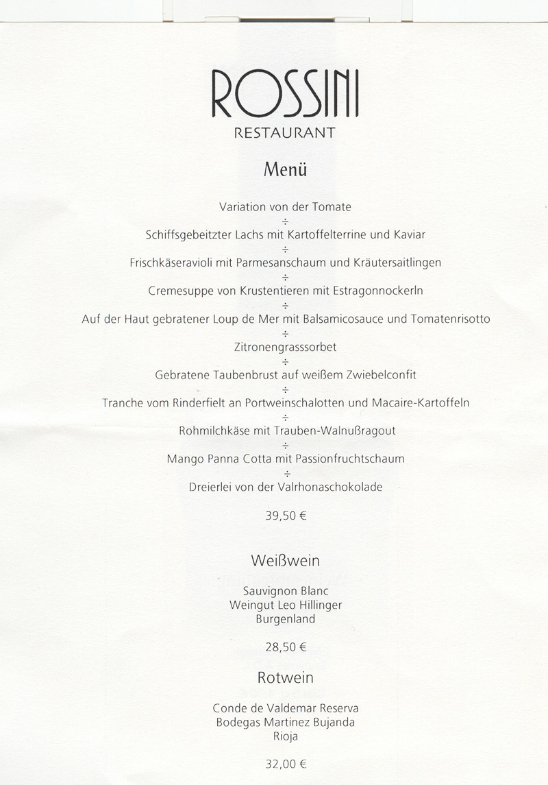 Die Kritiken für`s Rossini sind ja nicht so optimal und große Sekttrinker sind wir auch nicht ... so setzte ich auf Aidaexperten und freue mich auf Ideen von euch.