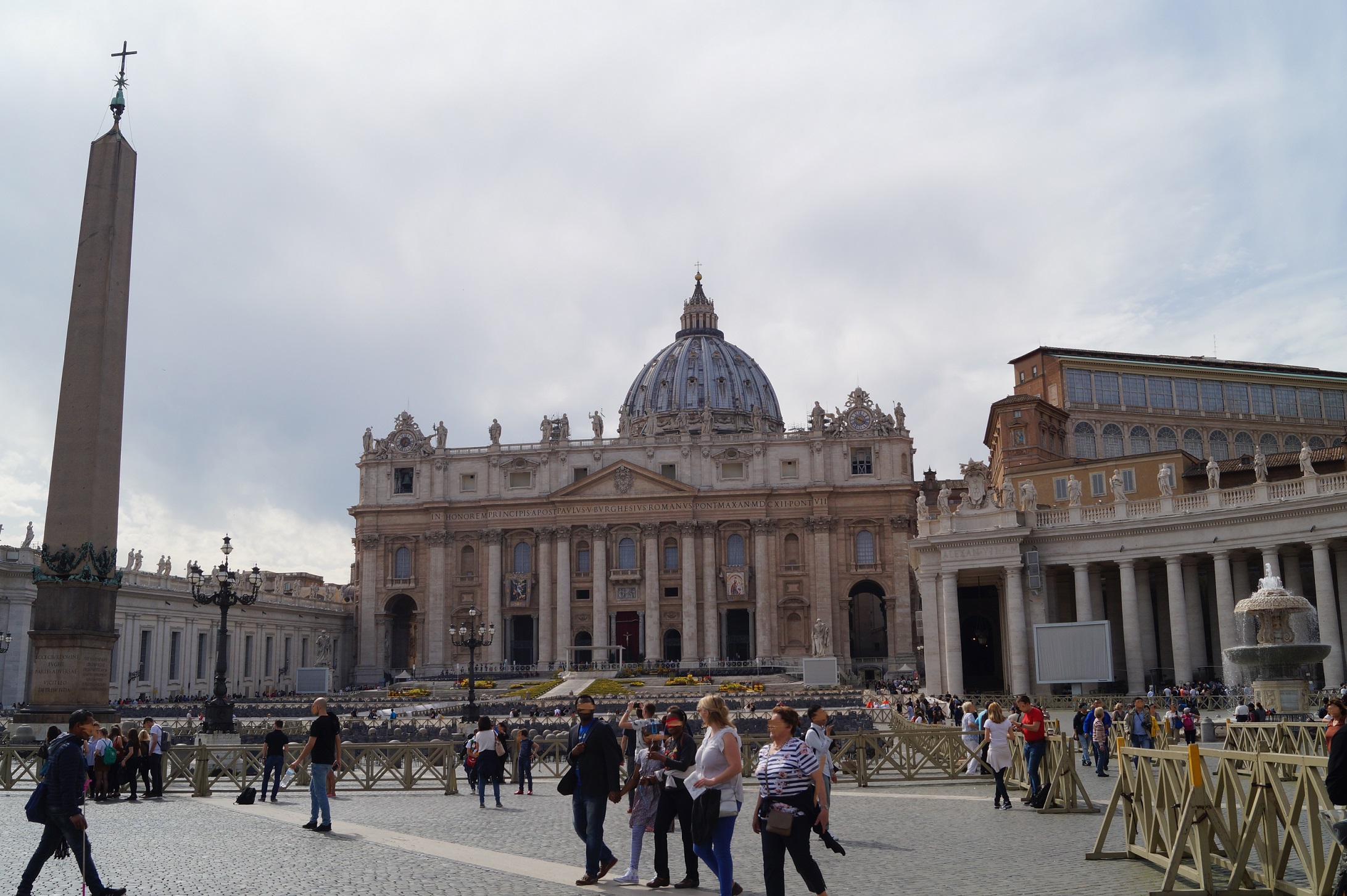 Während die anderen noch ewig mit dem Shuttle-Bus im Stau und im Rom - Marathon Chaos steckten, haben wir entspannt von Civitavecchia aus den Roma-Express genommen. Der hält direkt an der Grenze zum Vatikanstaat, 1km Fußweg zum Petersdom : Seeehr praktisch .