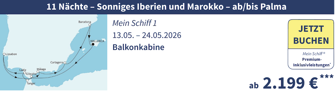 11 Nächte - Sonniges Iberien und Marokko - ab/bis Palma