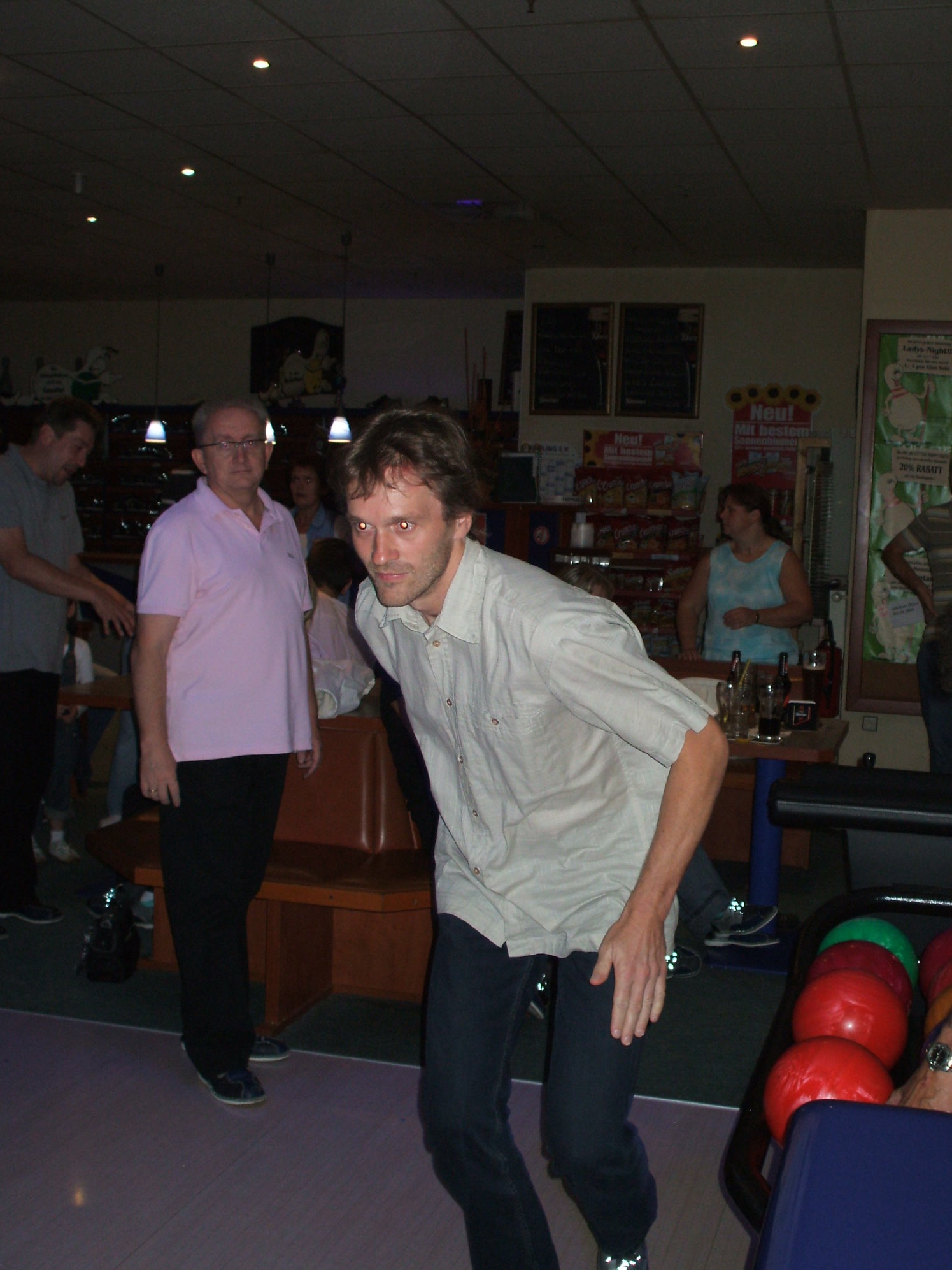 Tragt Euch doch mal ein!!!!!!!Ja, der Heri hatte es ja angekündigt. Gestern war ein AIDA-Minitreffen bei uns in Gera. War ein schöner Abend. Wir haben uns beim bowlen nix geschenkt und hatten beim Essen danach auch viel Spaß. Der Hammer: Wir waren so am bowlen, da meinte Heri, ich soll mir mal das Shirt eines Mannes auf der Nachbarbahn anschauen. Hab ich gemacht. Ist erst gar nicht aufgefallen, aber auf dem Ärmel stand "> Cruises. Da es kein AIDA-typisches Shirt war, dachten wir erst, er gehört(e) zur Crew. Sandra hat ihn dann dierekt angesprochen und es stellte sich heraus, dass er auch den Virus hat. Hab ihm natürlich gleich die aidabar schmackhaft gemacht. Und hier noch ein paar Fotos.