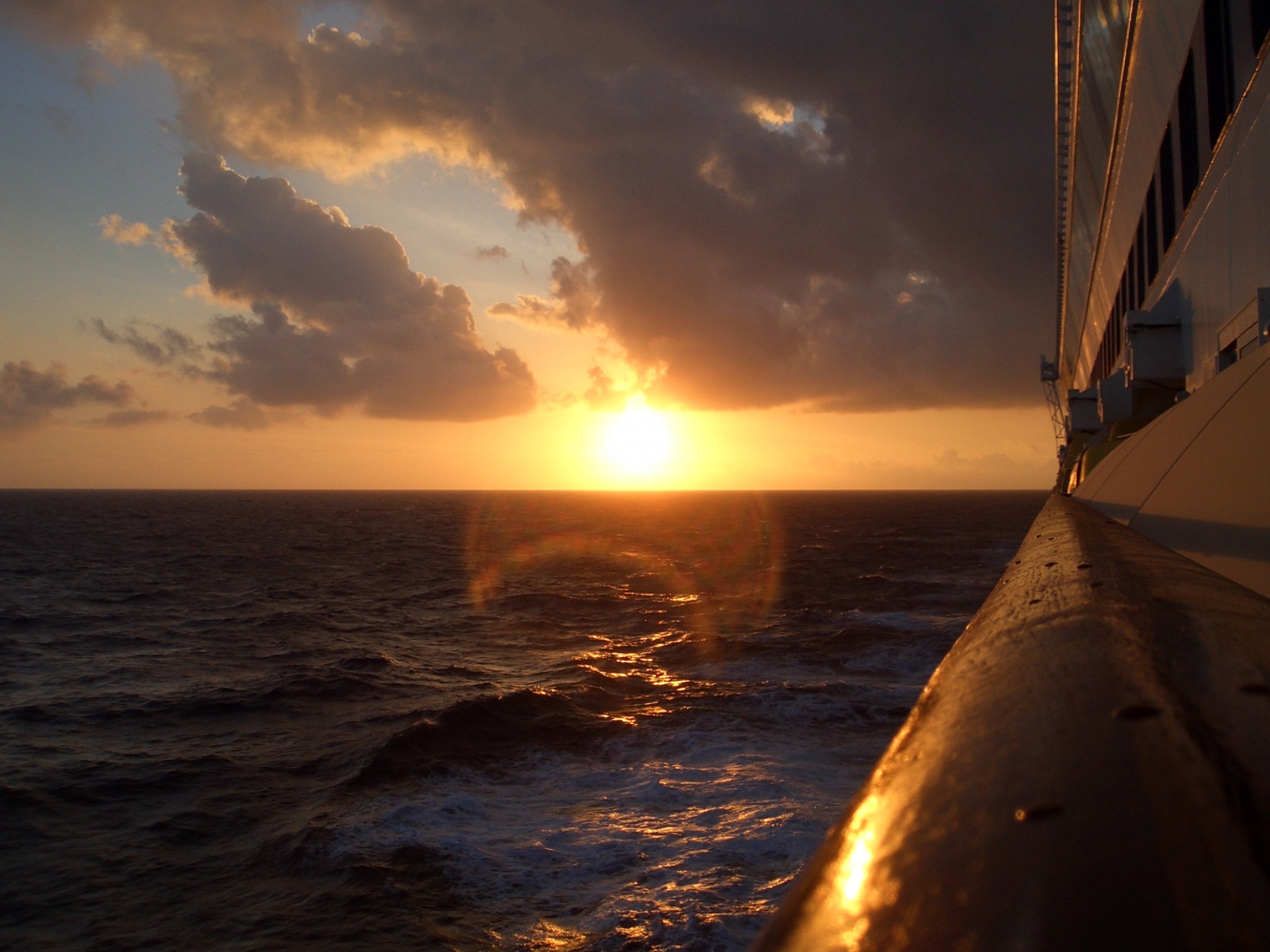 Das eine ist der Sonnenaufgang am Seetag zwischen Aruba und Jamaica am 13.01.2008, das andere der Sonnenuntergang auf Aruba hinter der "> am 26.01.08, als wir noch im Hotel auf Aruba waren und die Vita haben auslaufen sehen...