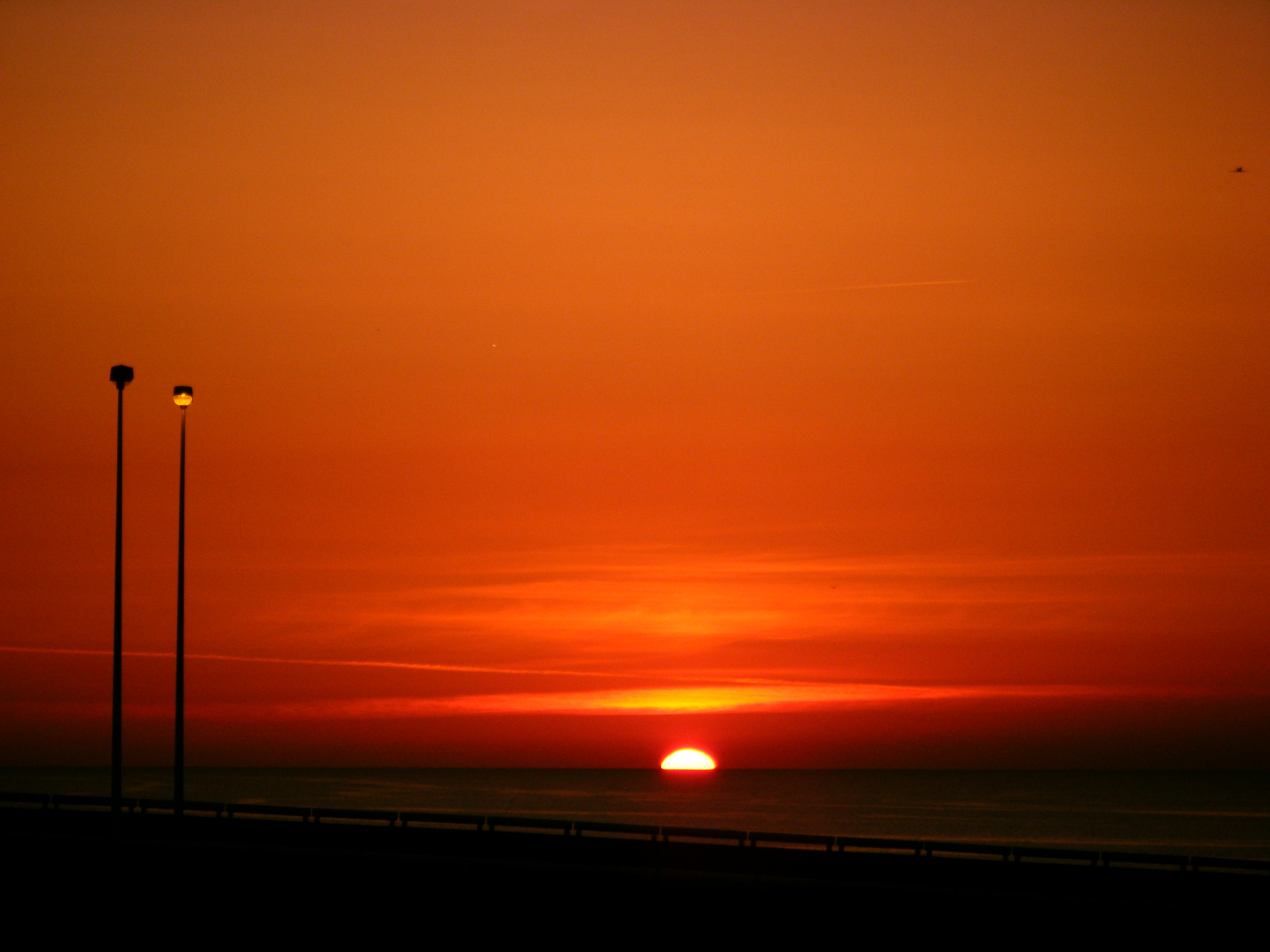 Aber ich muss zugeben, das Bild weiter oben in Barcelona ist am Abreisetag entstanden, da musste ich früh aufstehen, und das Bild hier unten ist in Kiel entstanden (jawohl, auch bei uns gibt es schöne Sonnenaufgänge) kurz vor der Einfahrt in den Nord-Ostsee-Kanal, den ich nicht verpassen wollte... ![]()
