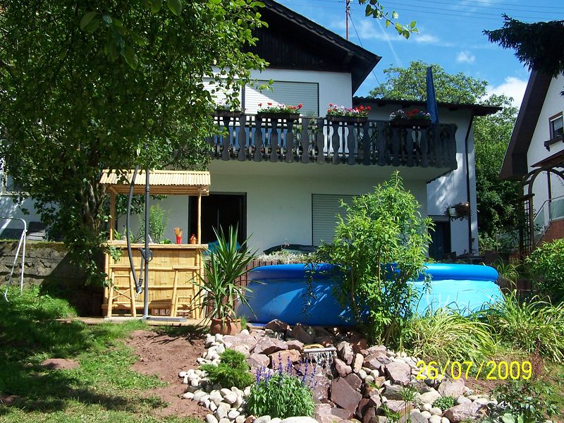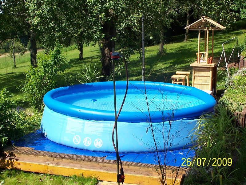 Ich habe mir im vergangenen Jahr diese "Holzterrasse", auf welcher dieser Pool steht, gebaut, da ich im Garten ein ziemliches Gefälle habe.