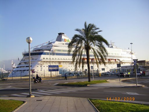 Hier der Blick von der Bushaltestelle Estació Maritima zum Schiff. Ist also nicht weit.