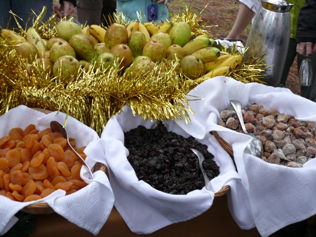 Die Tour startete pünktlich bei noch trockenem Wetter. Nach dem Besuch der Kirche stand der erste Aussichtpunkt auf dem Programm. Alle Mann raus aus dem Bus, um dann schnell wieder einzusteigen, da es plötzlich stark anfing zu regnen. Tja und so blieb es die ganze Zeit. Fahrt zum Krater war vernebelt. Die kurze Wanderung dort musste ausfallen, da es zu gefährlich gewesen wäre. Zuvor hatten wir aber ewas Glück und konnten den ersten Umtrunk bei der VIP-Tour einigermaßen trocken genießen.