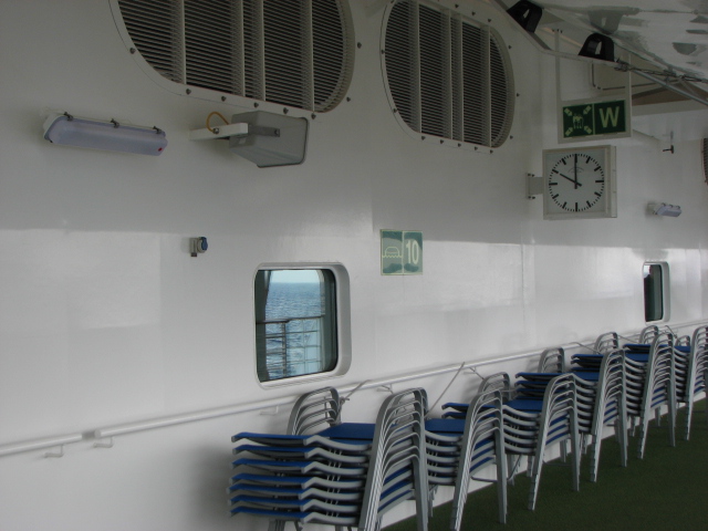 Immer um das Basketballfeld rum, dann wieder zum Vorschiff.