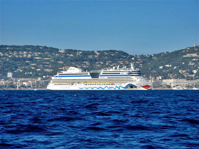 Ich habe heute von Freunden, die mit ihrer Yacht unterwegs waren, ein Bild der Diva vor Cannes bekommen. So kann man das Schiff als Aida-Gast nur von einem Bootsausflug erleben.