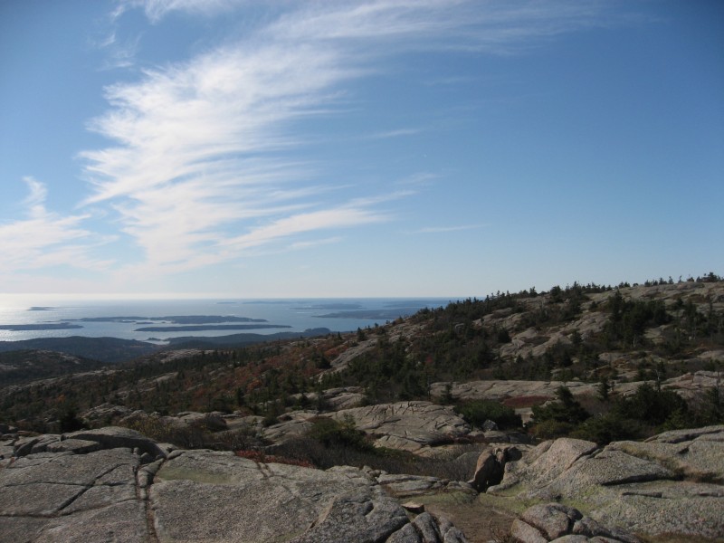 (wunderschönen) Park auf den Cadillac Mountain. Von hier oben hat man wirklich einen