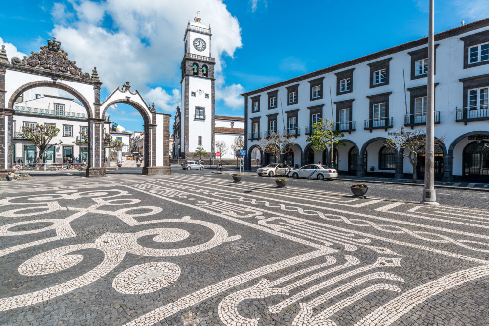 Das Wahrzeichen von Ponta Delgada wurde im 18. Jahrhundert in der Nähe des ehemaligen Kais erbaut und später, während der Bauarbeiten an der Avenida Infante Dom Henrique, auf die Praça Gonçalo Velho Cabral umgesetzt. Es besteht aus drei Bögen, wovon auf dem mittleren das Wappen der königlichen Waffen und der Stadt dargestellt sind. Diese Stadttore sind die Visitenkarte von Ponta Delgada.